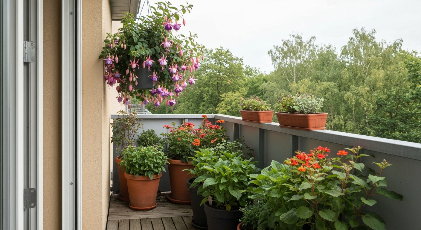 Für einen Balkon im Vollschatten eignen sich besonders Waldpflanzen wie Farne, Funkien (Hosta) und Efeu, da sie ursprünglich unter dichten Baumkronen wachsen. Bei den blühenden Pflanzen sind Fuchsien, Begonien und das Fleißige Lieschen die idealen Kandidaten, um auch ohne direktes Sonnenlicht farbenfrohe Akzente zu setzen.